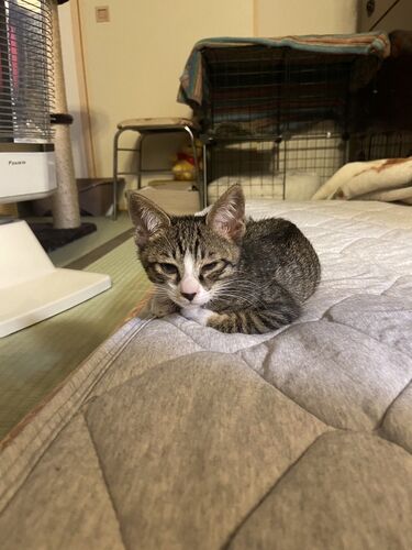 先に飼っていた猫さんがなくなって、甥御さんが寂しくて・・・次に来た子です。 保護猫さん。 ちんまりして可愛い、早く環境に慣れてね。